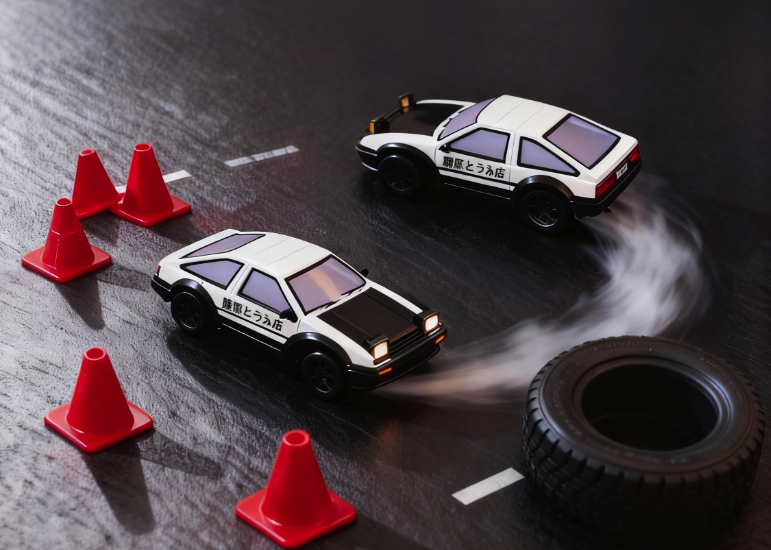 Bring the legend of Initial D to your desktop with this mini remote control AE86! Crafted to replicate the iconic Toyota AE86, it delivers realistic drifting action right at your fingertips. Whether you’re recreating mountain passes or racing on your desk, the authentic details (like “藤原とうふ店” decals) and dynamic design make it a standout for car lovers and anime fans.